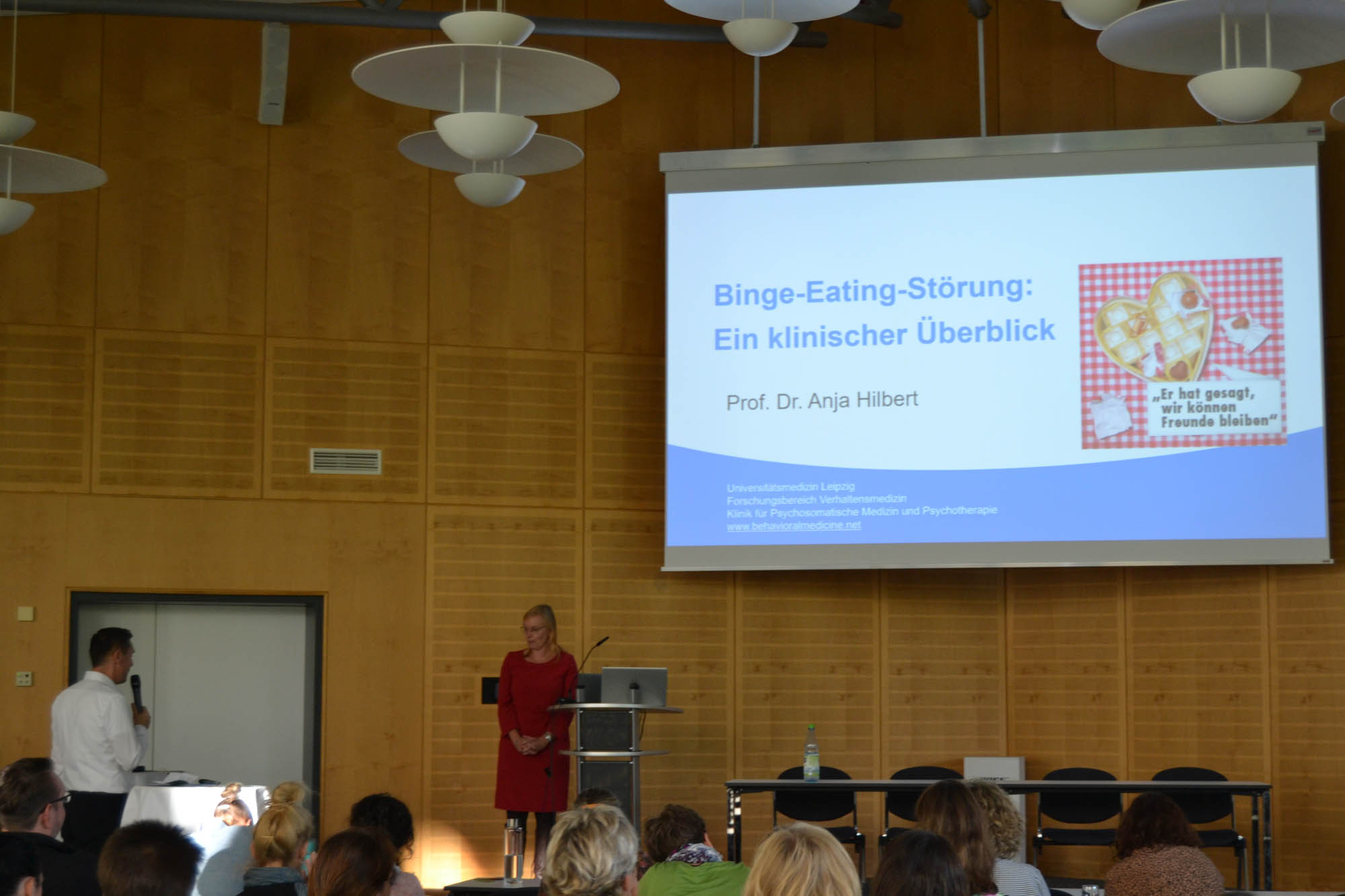 Er eröffnete als Gastgeber die Veranstaltung mit einem Einblick in die Komplexität der Rehabilitation bei Essstörungen. Im Anschluss folgte der Hauptvortrag von Prof. Dr. Anja Hilbert zum Thema Binge Eating. Sie erläuterte die Entstehungsmechanismen, die Aufrechterhaltung und die Behandlung dieser häufig komplexen und oft nicht adäquat behandelten Essstörung. An praxisnahen Beispielen zeigte sie mögliche Therapieansätze auf, die direkt im beruflichen Alltag der Teilnehmenden anwendbar sind. Zahlreiche Fragen sowie ergänzende Beiträge im Anschluss an den informativen Vortrag zeigten das große Interesse der Gäste und sorgten für eine wertvolle fachliche Diskussion.