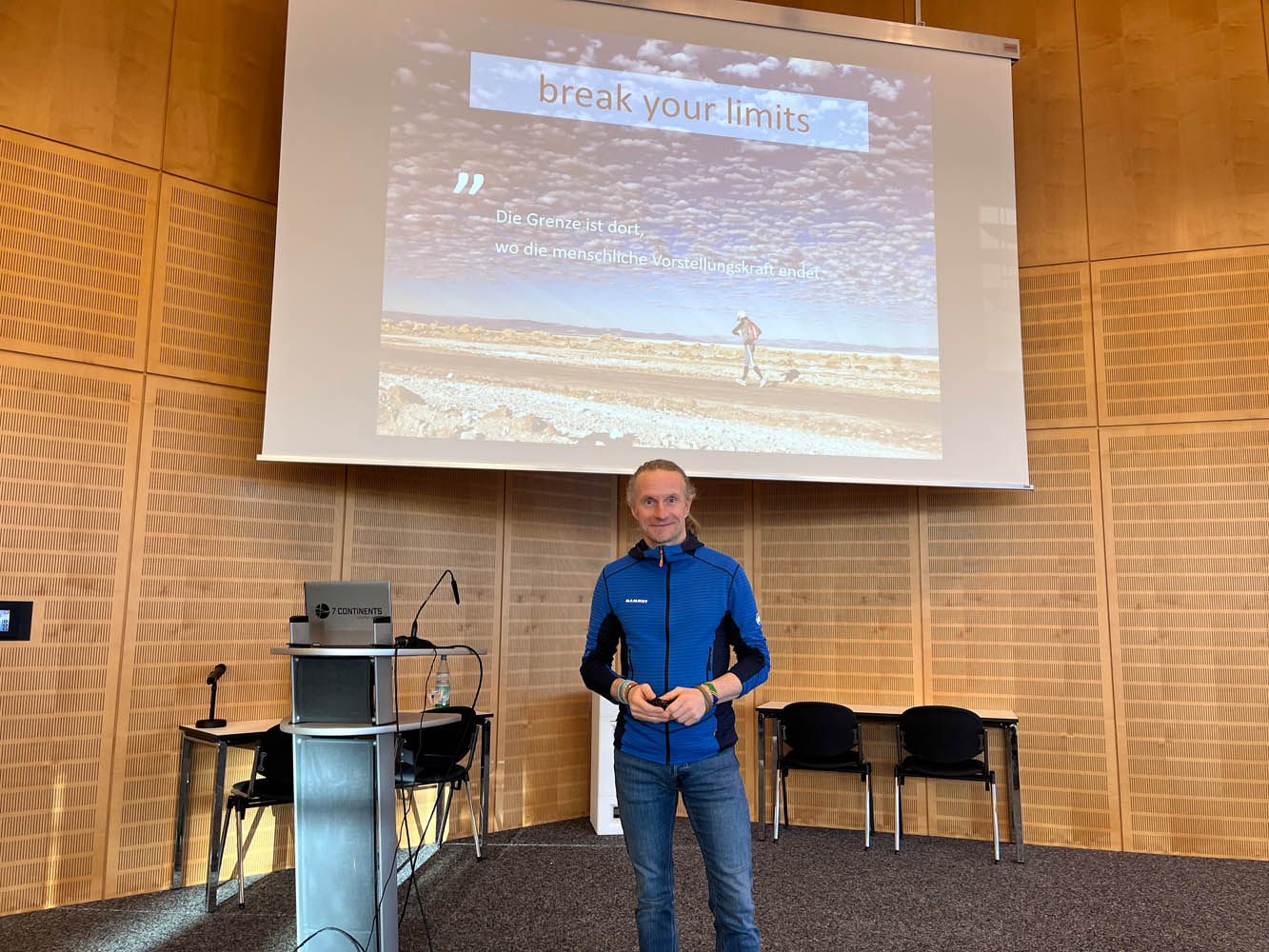 Seine Reisen führten ihn dabei durch extreme Klimazonen, abgelegene Regionen und Situationen, in denen körperliche Belastbarkeit, mentale Stärke und Willenskraft entscheidend waren. In seinem Vortrag berichtete er authentisch von diesen Grenzerfahrungen, von Rückschlägen, Zweifeln und der Kraft, dennoch weiterzugehen.